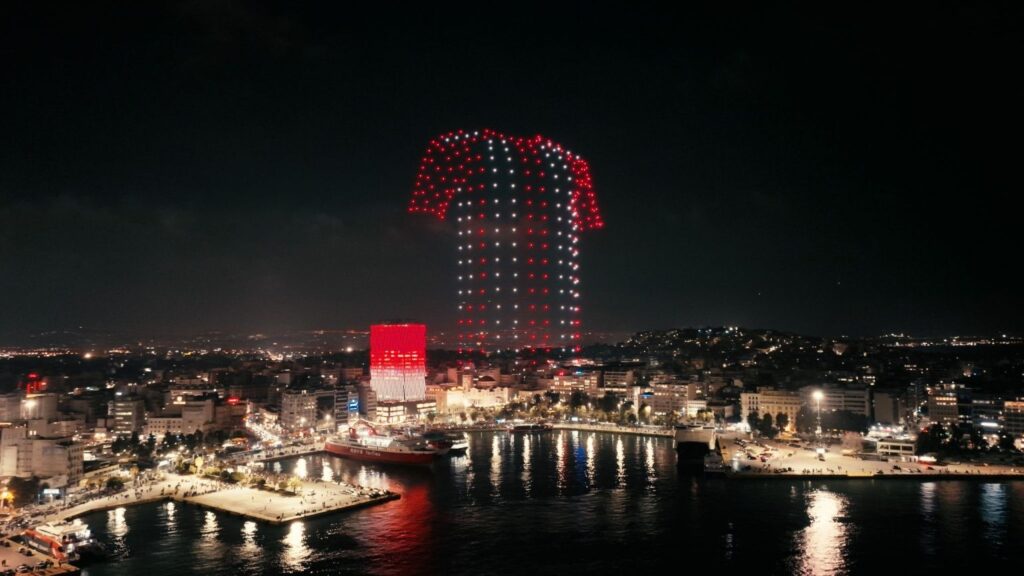 Λίγο αργότερα το ίδιο βράδυ, στις 00:00, οι φίλαθλοι του Ολυμπιακού φωταγώγησαν τον Πειραιά και όλη την Ελλάδα, για να πουν έτσι “χρόνια πολλά” στην κορυφαία ομάδα της χώρας! Το σκηνικό, όπως αποτυπώθηκε από τα drones, ήταν μοναδικό, εντυπωσιακό. Ο αττικός ουρανός κοκκίνισε για τα 100 χρόνια του Θρύλου.