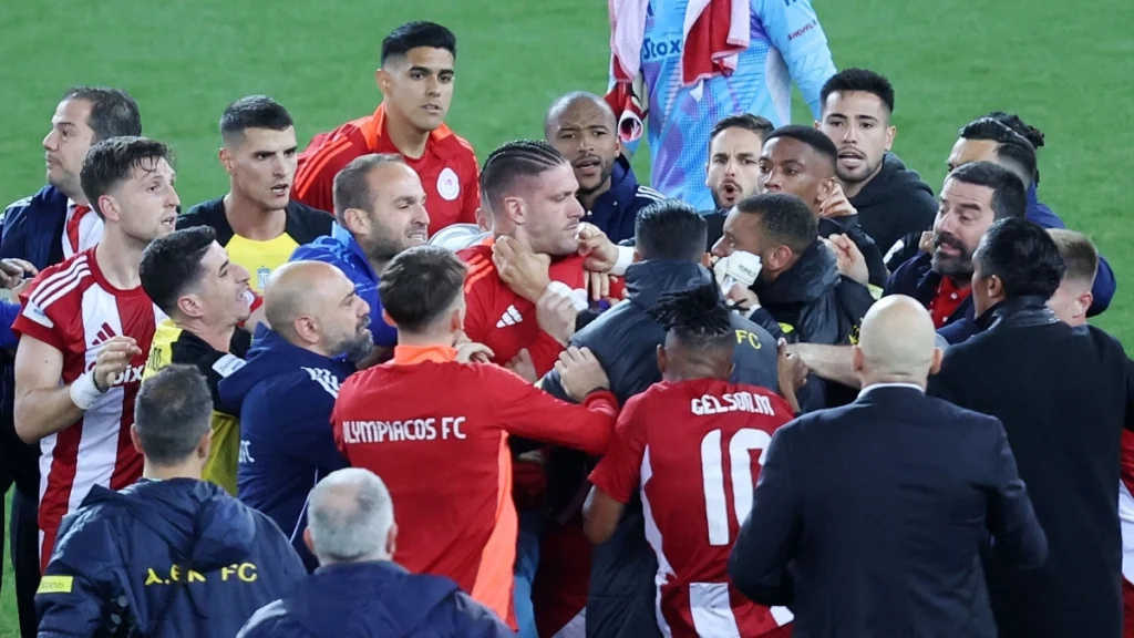 ΟΠΩΣ έγινε γνωστό πριν από λίγο ο διαιτητής στο φύλλο αγώνα αναφέρει ότι κόκκινη κάρτα έδειξε στους Μαρσιάλ, Μουκουντί, Πασχαλάκη, Κάρμο και στον Ματίας Αλμέϊδα.