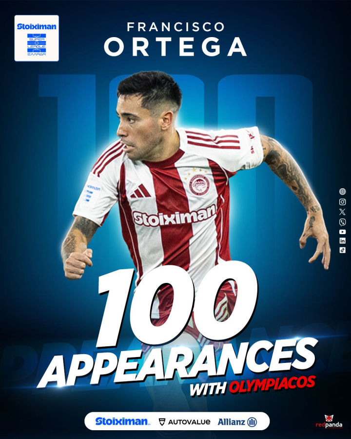 Στις 3 Σεπτεμβρίου 2023 ο Φρανσίσκο Ορτέγκα μπήκε για πρώτη φορά στο γήπεδο σε επίσημο αγώνα με τον Ολυμπιακό. Ήταν στην εντός έδρας νίκη επί της Λαμίας (4-0) για τη Super League. Την Κυριακή (8/2) συμπλήρωσε την 100ή παρουσία του με τα Ερυθρόλευκα, με τις 62 από αυτές να είναι για το πρωτάθλημα της Super League, όπου έχει σημειώσει και ένα τέρμα — στις 13 Σεπτεμβρίου 2025, στην αναμέτρηση Ολυμπιακός – Πανσερραϊκός 5-0.