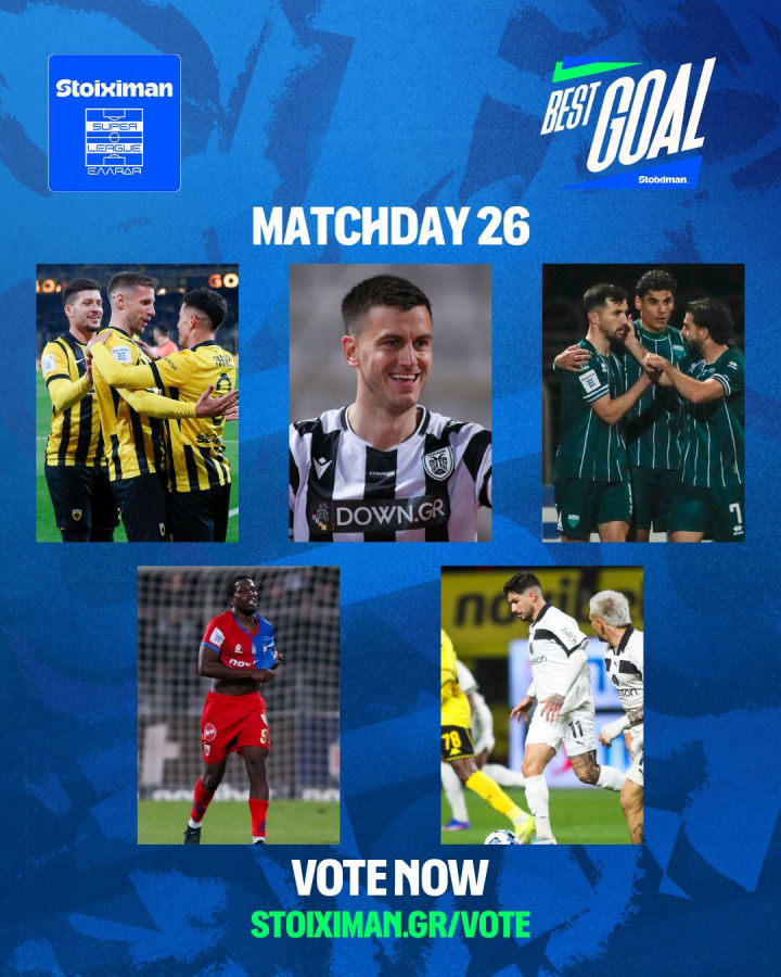Άνοιξε η ψηφοφορία για την ανάδειξη του Stoiximan Best Goal της 26ης αγωνιστικής του Πρωταθλήματος Stoiximan Super League.
