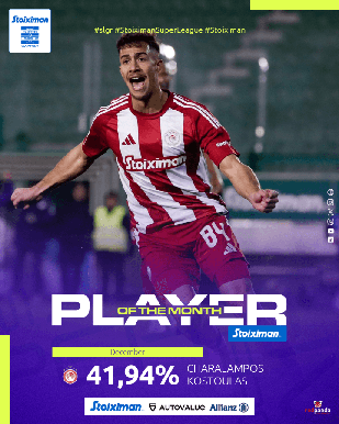 Η Super League ανακοινώνει τα αποτελέσματα του διαγωνισμού, μετά από ψηφοφορία των φιλάθλων, του διαγωνισμού Stoiximan Player of the Month του Δεκεμβρίου: