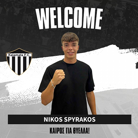 Η ΠΑΕ Καλαμάτα είναι στην ευχάριστη θέση να ανακοινώσει τον δανεισμό του ποδοσφαιριστή Νίκου Σπυράκου από τον ΠΑΟΚ για την επόμενη σεζόν.