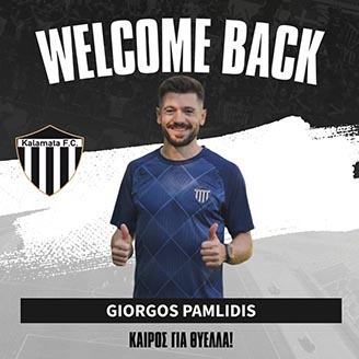 Η ΠΑΕ Καλαμάτα είναι στην ευχάριστη θέση να ανακοινώσει την παραμονή του ποδοσφαιριστή Γιώργου Παμλίδη, ανανεώνοντας τον δανεισμό του από την ΠΑΕ Άρης για μια ακόμα σεζόν.