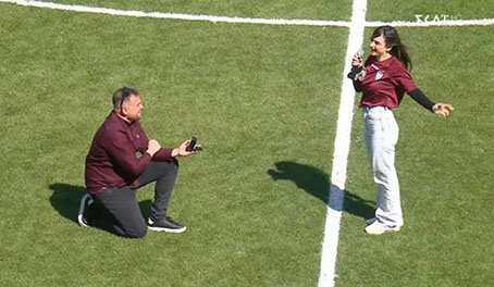 Ρεπόρτερ έκανε πρόταση γάμου στην αγαπημένη του στη σέντρα του AEL FC Arena