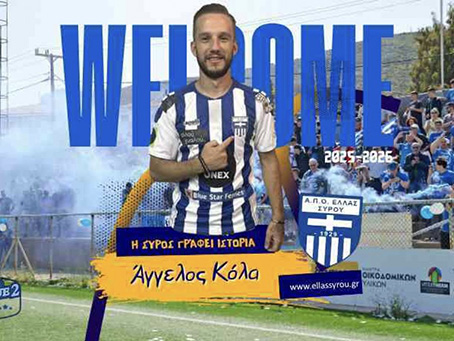 Η ΠΑΕ Ελλάς Σύρου ανακοινώνει την έναρξη της συνεργασίας της με τον Άγγελο Κόλα, ενισχύοντας ακόμη περισσότερο το ρόστερ της ενόψει της νέας αγωνιστικής περιόδου.